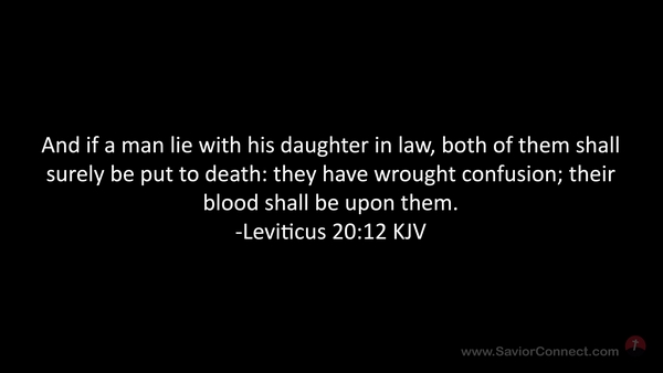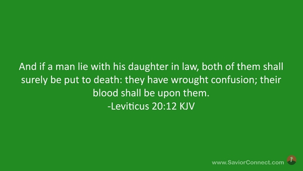 And if a man lie with his daughter in law, both of them shall surely be put to death: they have wrought confusion; their blood shall be upon them. -Leviticus 20:12 KJV