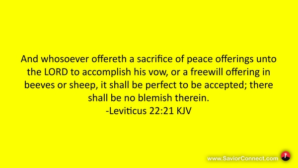 And whosoever offereth a sacrifice of peace offerings unto the LORD to accomplish his vow, or a freewill offering in beeves or sheep, it shall be perfect to be accepted; there shall be no blemish therein. -Leviticus 22:21 KJV