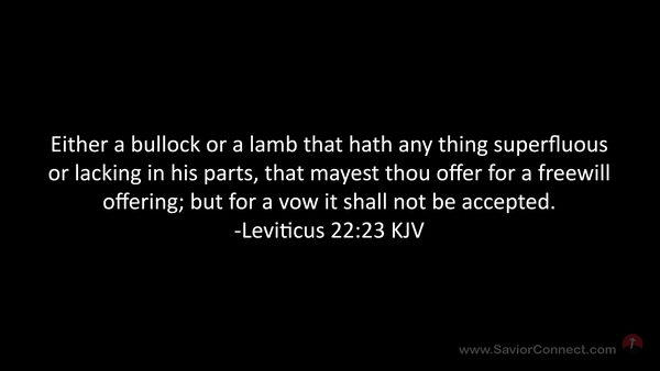 Either a bullock or a lamb that hath any thing superfluous or lacking in his parts, that mayest thou offer for a freewill offering; but for a vow it shall not be accepted. -Leviticus 22:23 KJV