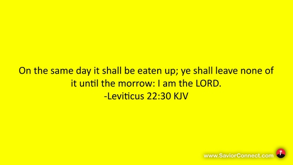On the same day it shall be eaten up; ye shall leave none of it until the morrow: I am the LORD. -Leviticus 22:30 KJV
