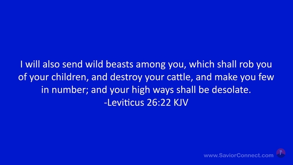 I will also send wild beasts among you, which shall rob you of your children, and destroy your cattle, and make you few in number; and your high ways shall be desolate. -Leviticus 26:22 KJV