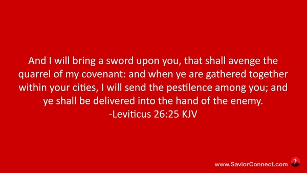 And I will bring a sword upon you, that shall avenge the quarrel of my covenant: and when ye are gathered together within your cities, I will send the pestilence among you; and ye shall be delivered into the hand of the enemy. -Leviticus 26:25 KJV