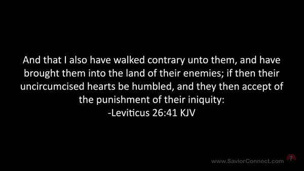 And that I also have walked contrary unto them, and have brought them into the land of their enemies; if then their uncircumcised hearts be humbled, and they then accept of the punishment of their iniquity: -Leviticus 26:41 KJV
