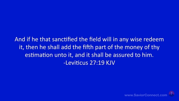 And if he that sanctified the field will in any wise redeem it, then he shall add the fifth part of the money of thy estimation unto it, and it shall be assured to him. -Leviticus 27:19 KJV