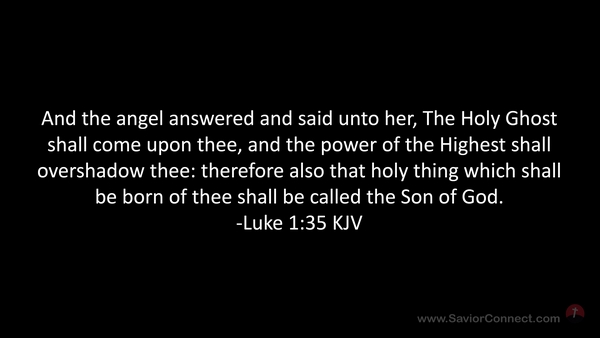 And the angel answered and said unto her, The Holy Ghost shall come upon thee, and the power of the Highest shall overshadow thee: therefore also that holy thing which shall be born of thee shall be called the Son of God. -Luke 1:35 KJV
