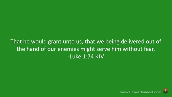 That he would grant unto us, that we being delivered out of the hand of our enemies might serve him without fear, -Luke 1:74 KJV