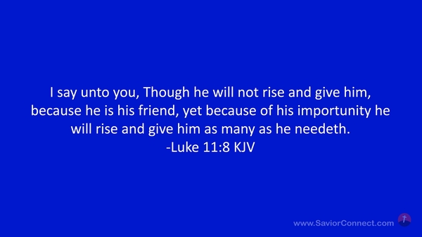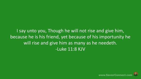 I say unto you, Though he will not rise and give him, because he is his friend, yet because of his importunity he will rise and give him as many as he needeth. -Luke 11:8 KJV