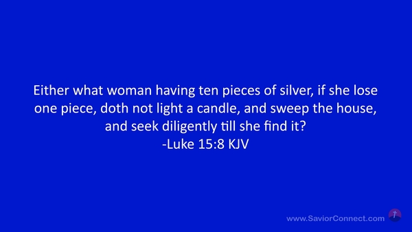 Either what woman having ten pieces of silver, if she lose one piece, doth not light a candle, and sweep the house, and seek diligently till she find it? -Luke 15:8 KJV