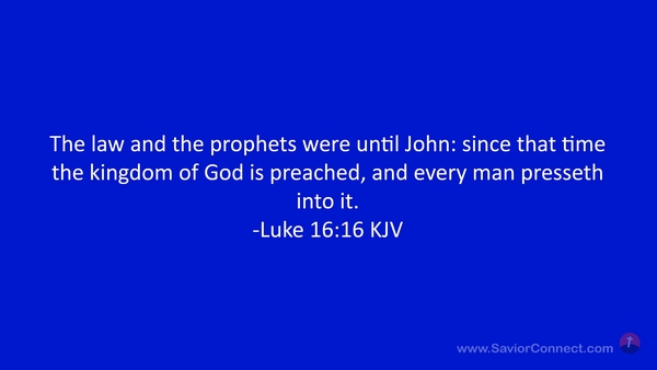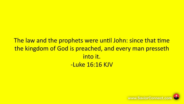The law and the prophets were until John: since that time the kingdom of God is preached, and every man presseth into it. -Luke 16:16 KJV