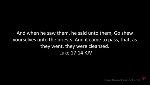 And when he saw them, he said unto them, Go shew yourselves unto the priests. And it came to pass, that, as they went, they were cleansed. -Luke 17:14 KJV