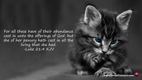 For all these have of their abundance cast in unto the offerings of God: but she of her penury hath cast in all the living that she had. -Luke 21:4 KJV