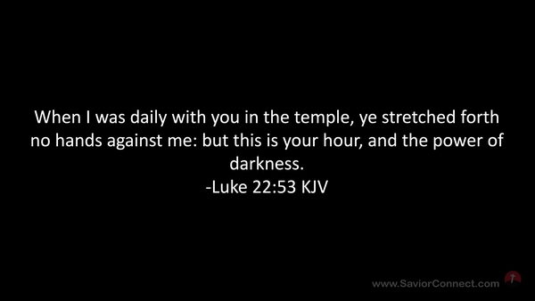 When I was daily with you in the temple, ye stretched forth no hands against me: but this is your hour, and the power of darkness. -Luke 22:53 KJV