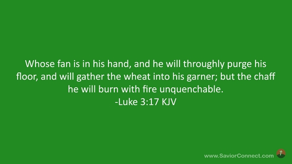 Whose fan is in his hand, and he will throughly purge his floor, and will gather the wheat into his garner; but the chaff he will burn with fire unquenchable. -Luke 3:17 KJV