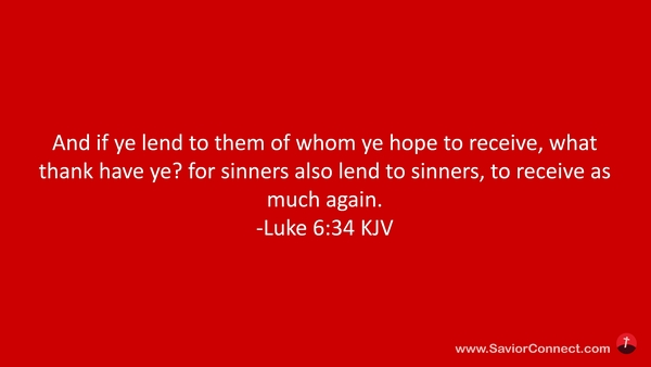 And if ye lend to them of whom ye hope to receive, what thank have ye? for sinners also lend to sinners, to receive as much again. -Luke 6:34 KJV