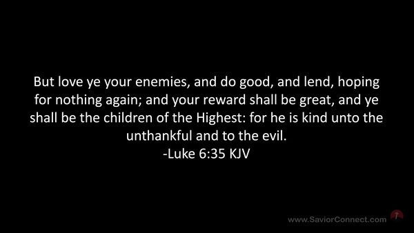 But love ye your enemies, and do good, and lend, hoping for nothing again; and your reward shall be great, and ye shall be the children of the Highest: for he is kind unto the unthankful and to the evil. -Luke 6:35 KJV