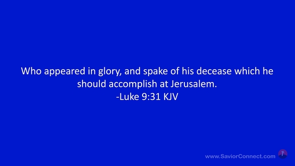 Who appeared in glory, and spake of his decease which he should accomplish at Jerusalem. -Luke 9:31 KJV