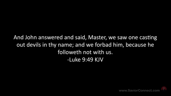 And John answered and said, Master, we saw one casting out devils in thy name; and we forbad him, because he followeth not with us. -Luke 9:49 KJV
