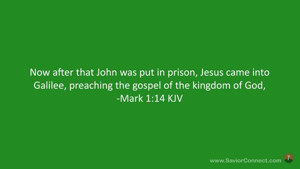 Now after that John was put in prison, Jesus came into Galilee, preaching the gospel of the kingdom of God, -Mark 1:14 KJV