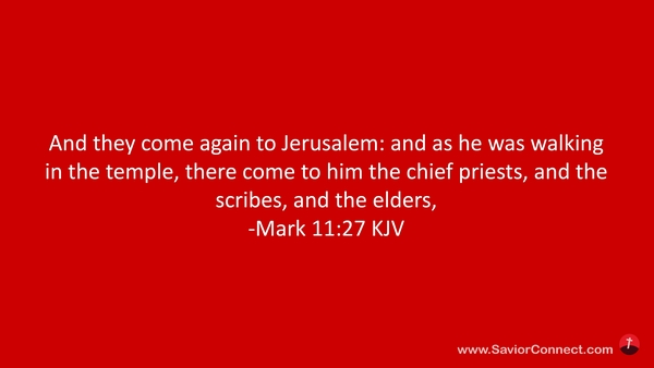And they come again to Jerusalem: and as he was walking in the temple, there come to him the chief priests, and the scribes, and the elders, -Mark 11:27 KJV