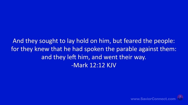 And they sought to lay hold on him, but feared the people: for they knew that he had spoken the parable against them: and they left him, and went their way. -Mark 12:12 KJV