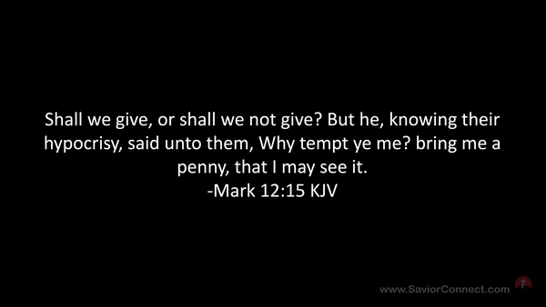 Shall we give, or shall we not give? But he, knowing their hypocrisy, said unto them, Why tempt ye me? bring me a penny, that I may see it. -Mark 12:15 KJV