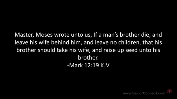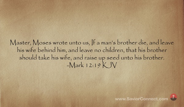 Master, Moses wrote unto us, If a man's brother die, and leave his wife behind him, and leave no children, that his brother should take his wife, and raise up seed unto his brother. -Mark 12:19 KJV
