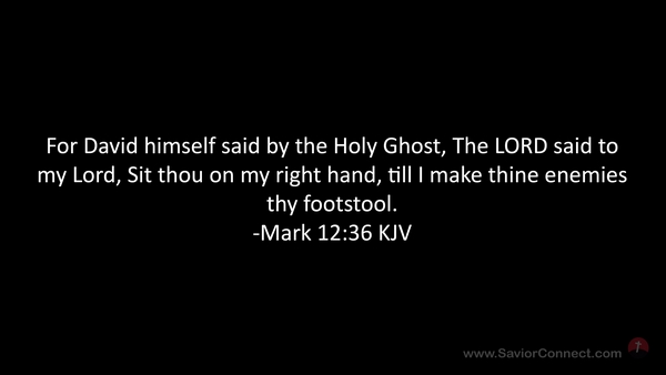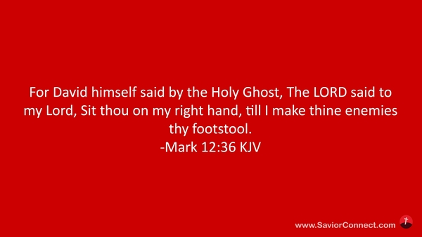 For David himself said by the Holy Ghost, The LORD said to my Lord, Sit thou on my right hand, till I make thine enemies thy footstool. -Mark 12:36 KJV