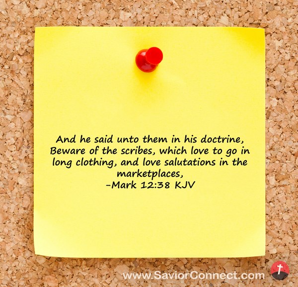 And he said unto them in his doctrine, Beware of the scribes, which love to go in long clothing, and love salutations in the marketplaces, -Mark 12:38 KJV