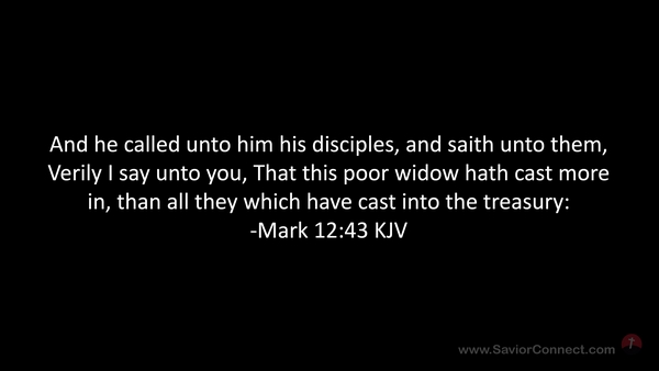 And he called unto him his disciples, and saith unto them, Verily I say unto you, That this poor widow hath cast more in, than all they which have cast into the treasury: -Mark 12:43 KJV
