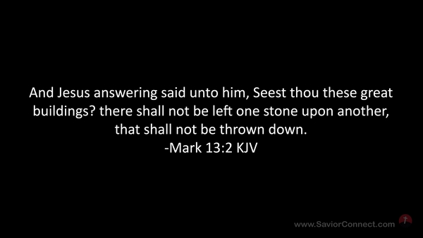 And Jesus answering said unto him, Seest thou these great buildings? there shall not be left one stone upon another, that shall not be thrown down. -Mark 13:2 KJV