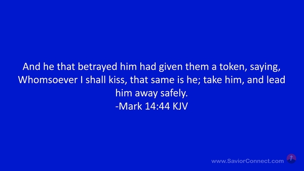 And he that betrayed him had given them a token, saying, Whomsoever I shall kiss, that same is he; take him, and lead him away safely. -Mark 14:44 KJV