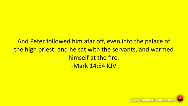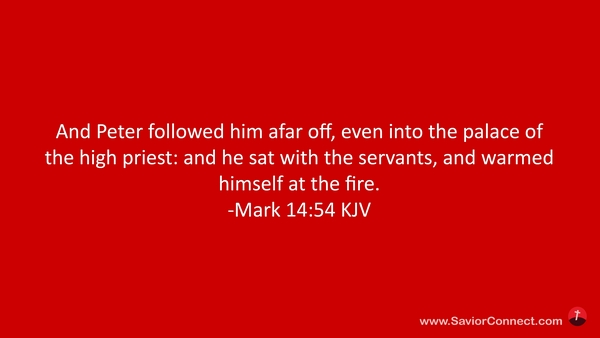 And Peter followed him afar off, even into the palace of the high priest: and he sat with the servants, and warmed himself at the fire. -Mark 14:54 KJV