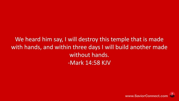 We heard him say, I will destroy this temple that is made with hands, and within three days I will build another made without hands. -Mark 14:58 KJV