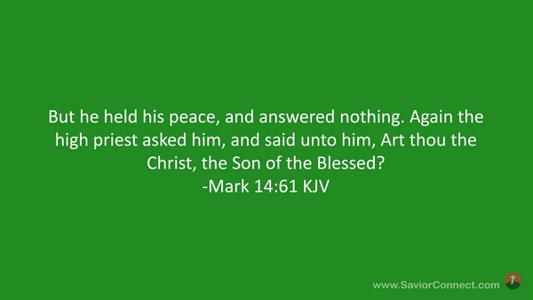 But he held his peace, and answered nothing. Again the high priest asked him, and said unto him, Art thou the Christ, the Son of the Blessed? -Mark 14:61 KJV