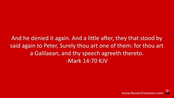 And he denied it again. And a little after, they that stood by said again to Peter, Surely thou art one of them: for thou art a Galilaean, and thy speech agreeth thereto. -Mark 14:70 KJV