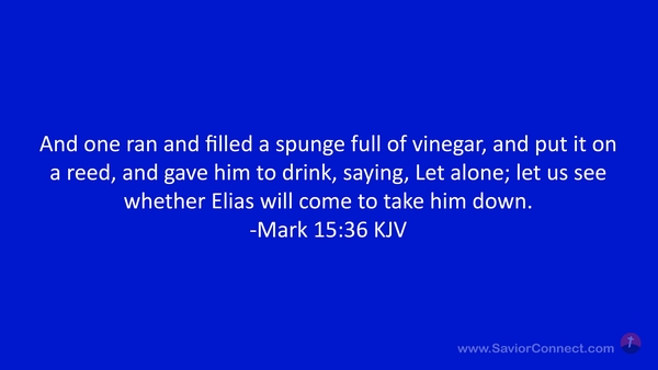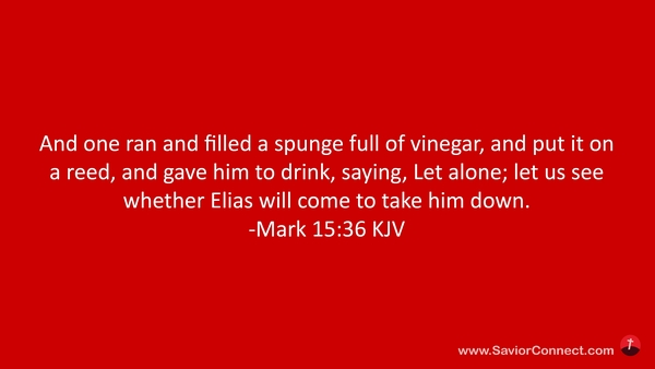 And one ran and filled a spunge full of vinegar, and put it on a reed, and gave him to drink, saying, Let alone; let us see whether Elias will come to take him down. -Mark 15:36 KJV