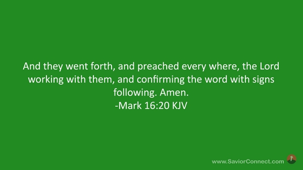And they went forth, and preached every where, the Lord working with them, and confirming the word with signs following. Amen. -Mark 16:20 KJV