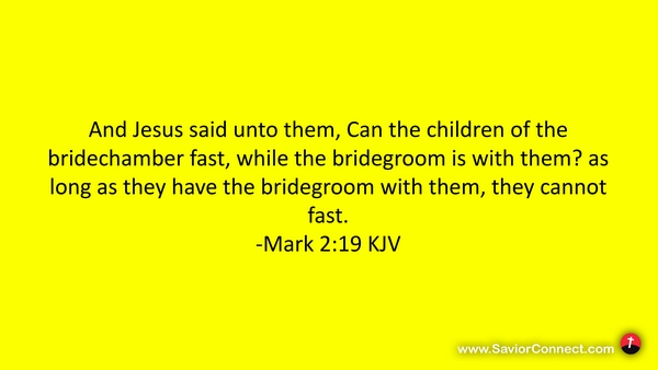 And Jesus said unto them, Can the children of the bridechamber fast, while the bridegroom is with them? as long as they have the bridegroom with them, they cannot fast. -Mark 2:19 KJV