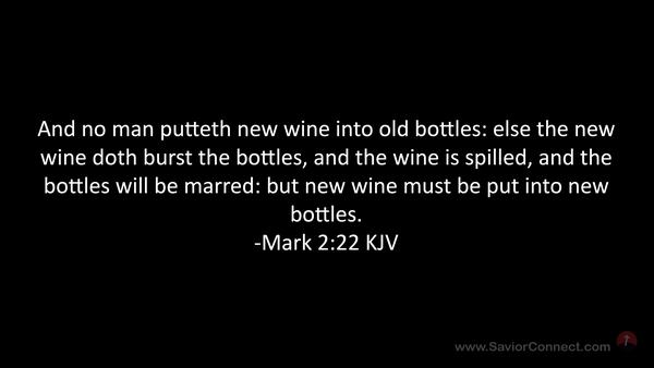 And no man putteth new wine into old bottles: else the new wine doth burst the bottles, and the wine is spilled, and the bottles will be marred: but new wine must be put into new bottles. -Mark 2:22 KJV