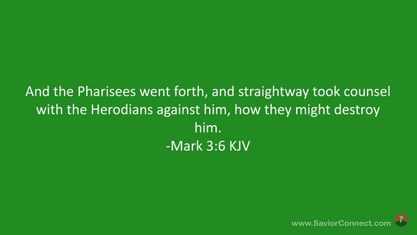 And the Pharisees went forth, and straightway took counsel with the Herodians against him, how they might destroy him. -Mark 3:6 KJV