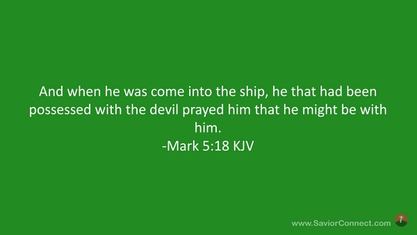 And when he was come into the ship, he that had been possessed with the devil prayed him that he might be with him. -Mark 5:18 KJV