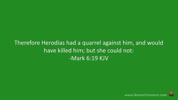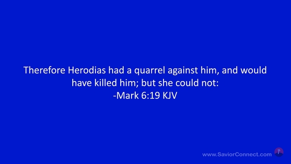 Therefore Herodias had a quarrel against him, and would have killed him; but she could not: -Mark 6:19 KJV