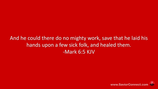And he could there do no mighty work, save that he laid his hands upon a few sick folk, and healed them. -Mark 6:5 KJV