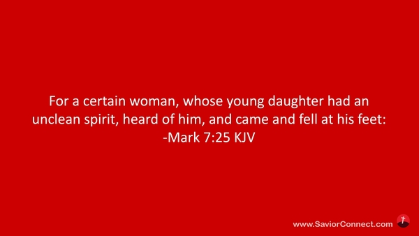 For a certain woman, whose young daughter had an unclean spirit, heard of him, and came and fell at his feet: -Mark 7:25 KJV