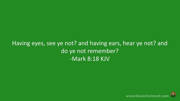 Having eyes, see ye not? and having ears, hear ye not? and do ye not remember? -Mark 8:18 KJV