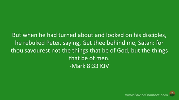 But when he had turned about and looked on his disciples, he rebuked Peter, saying, Get thee behind me, Satan: for thou savourest not the things that be of God, but the things that be of men. -Mark 8:33 KJV