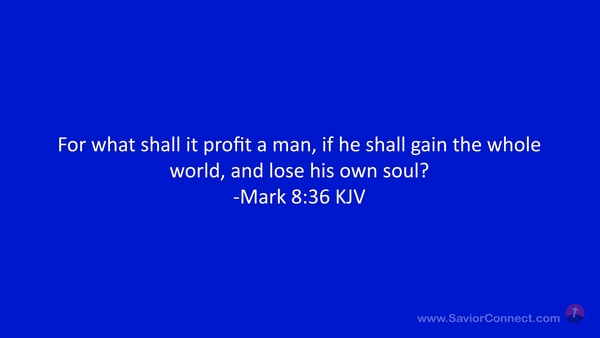 For what shall it profit a man, if he shall gain the whole world, and lose his own soul? -Mark 8:36 KJV
