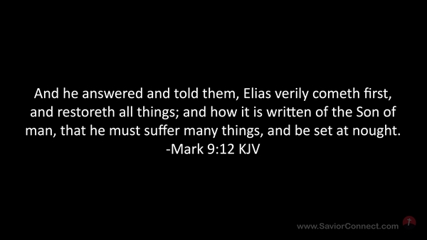 And he answered and told them, Elias verily cometh first, and restoreth all things; and how it is written of the Son of man, that he must suffer many things, and be set at nought. -Mark 9:12 KJV