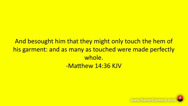 And besought him that they might only touch the hem of his garment: and as many as touched were made perfectly whole. -Matthew 14:36 KJV
