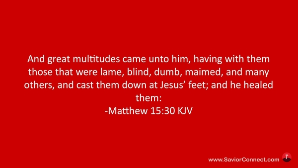 And great multitudes came unto him, having with them those that were lame, blind, dumb, maimed, and many others, and cast them down at Jesus' feet; and he healed them: -Matthew 15:30 KJV